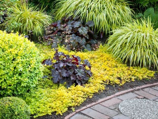 Anspruchslose, bodendeckende Staude mit frisch lindgrünen, runden Blättern.