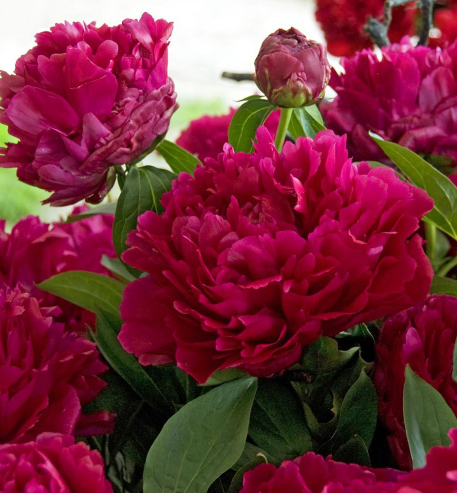 Eigenschaften: Pfingstrosen sind langlebige und sehr robuste Stauden, die keiner besonderen Pflege bedürfen. Die Sorte ´ADOLPHE ROUSSEAU´ blüht ab Mai mit großen, etwa 15 cm breiten, halbgefüllten bis gefüllten Blüten in roten bis rosaroten Farbtönen. Die Blüten wachsen an kräftigen Stielen und eignen sich hervorragend zum Schnitt. Zudem verströmen sie einen leichten, sehr frischen Duft. Die Blätter sind geteilt und dunkelgrün gefärbt. Diese Sorte erreicht eine Wuchshöhe von etwa 100 cm. Pfingstrosen kommen sowohl im Staudenbeet als auch als Ergänzung zwischen Sträuchern und Bäumen besonders gut zur Geltung.