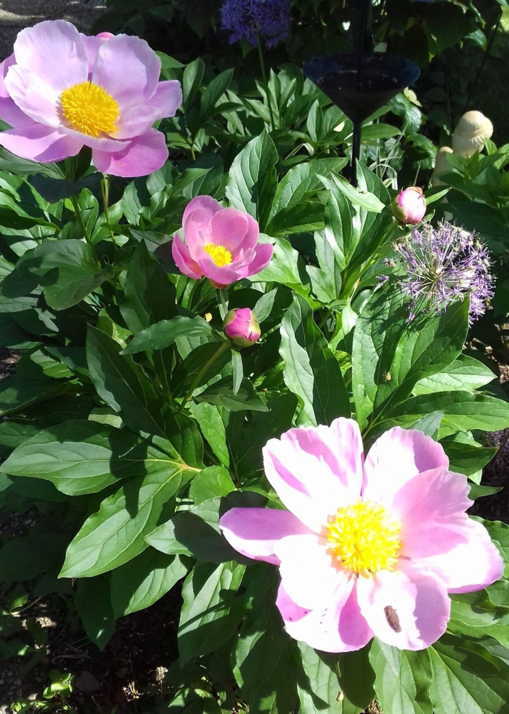 Anbau: Achten Sie beim Pflanzen darauf, dass das „Herz“ der Pflanze nur leicht mit Erde bedeckt ist. Werden Pfingstrosen zu tief gepflanzt, bleiben sie blühfaul. Pfingstrosen sind anspruchslose und langlebige Stauden, die einen sonnigen Standort bevorzugen; Schatten wird nicht gut vertragen. Am besten gedeihen sie in nährstoffreichen, durchlässigen Böden. In heißen Sommern ist gelegentliches Gießen empfehlenswert. Für eine üppige Blüte sollten sie jährlich nach dem Austrieb mit einem langsam wirkenden Dünger versorgt werden. Pfingstrosen mögen kein Umpflanzen.