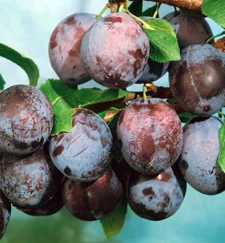 Eigenschaften:Die Pflaume „TOPGIGANT PLUS“ ist eine großfrüchtige, spät reifende Sorte. Die Früchte sind violettblau mit grüngelbem Fruchtfleisch und haben einen angenehm saftigen Geschmack. Es lässt sich leicht vom Stein trennen. Die Reife erfolgt allmählich von Mitte August bis September. Diese Sorte zeichnet sich durch eine hohe und regelmäßige Fruchtbarkeit aus und ist selbstbestäubend. Für eine noch höhere Fruchtbarkeit empfiehlt es sich, zwei verschiedene Sorten anzupflanzen. Normalerweise beginnt es sehr bald nach dem Pflanzen Früchte zu tragen.