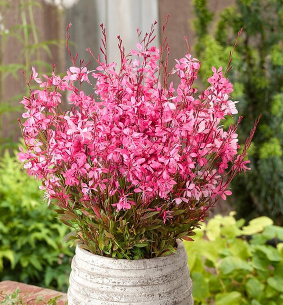 Eigenschaften: Prachtkerze ´TUTTI FRUTTI®´ ist eine mittelgroße, mehrjährige Füllpflanze, die eine Höhe von 40–50 cm erreicht. Am schönsten ist er in den Sommermonaten, wenn er zarte Blüten in bonbonrosa Tönen blüht. Die Blüten wachsen auf langen roten Stielen, die mit burgunderfarbenen, später grünen Blättern bedeckt sind. In Staudenbeeten kommt sie in Gesellschaft von Gänseblümchen, Katzenminze, Ziergräsern und Rosen gut zur Geltung. Es kann auch in einem Topf gezüchtet werden.