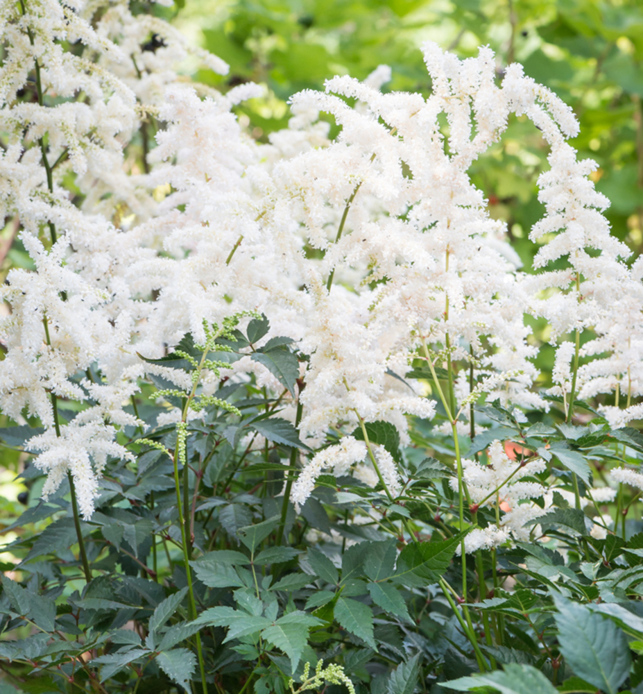 Eigenschaften:Prachtspiere ´DEUTSCHLAND´ ist eine beliebte Schatten liebende Staude, die sich durch ihre luftigen Rispenblütenstände auszeichnet. Sie blühen im Juni und Juli und erstrahlen in einer charakteristischen weißen Farbe. Die fein gezähnten, dichten Blätter haben eine dunkelgrüne Farbe mit einem bronzenen Schimmer. Es wächst schnell und bildet eine durchgehende Laubfläche, die das Wachstum von Unkraut wirksam verhindert. Er erreicht eine Wuchshöhe von 40 - 60 cm. Die Blüten eignen sich hervorragend zum Schneiden von Sträußen, aber auch zum Trocknen.