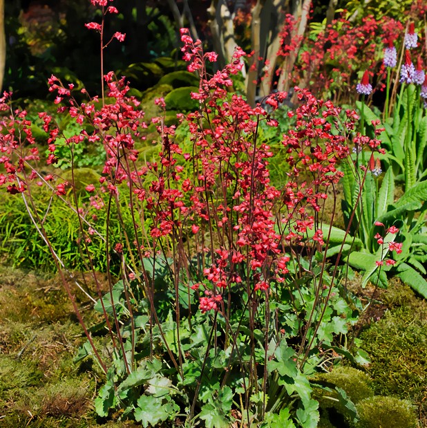 Anbau: Für gutes Wachstum und Vitalität benötigt die Heuchera unbedingt durchlässigen, humosen Boden. Sie verträgt keine schweren Lehmböden und anhaltende Trockenheit. Regelmäßiges Gießen während der Blüte fördert eine reiche und langanhaltende Blüte.