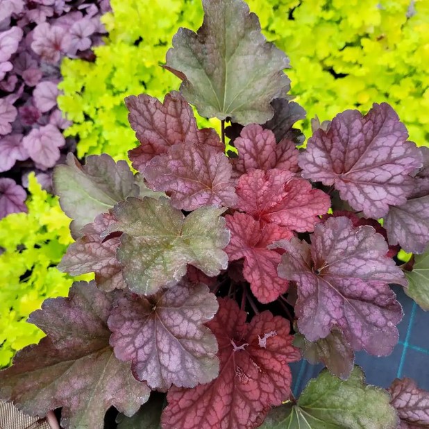 Eigenschaften: Purpurglöckche ´WORLD CAFFE SHAKERATO´ zeichnet sich durch samtige kastanienbraune Blätter mit silberner Marmorierung aus. Bei niedrigen Temperaturen verändert sich die Farbe der Blätter in ein tiefes Rosa. Kleine weiße Blüten auf dünnen, aber kräftigen Stielen verleihen der Pflanze ein angenehmes Aussehen. Purpurglöckche gehört zu den sehr dankbaren Stauden. Die Blätter sind gewellt, herzförmig und wachsen in dichten Büscheln. Sie wird vor allem wegen ihrer wunderschönen farbigen Blätter, die äußerst dekorativ sind und unter unseren Bedingungen bei den meisten Arten auch im Winter bestehen bleiben, häufig in Gärten gepflanzt.