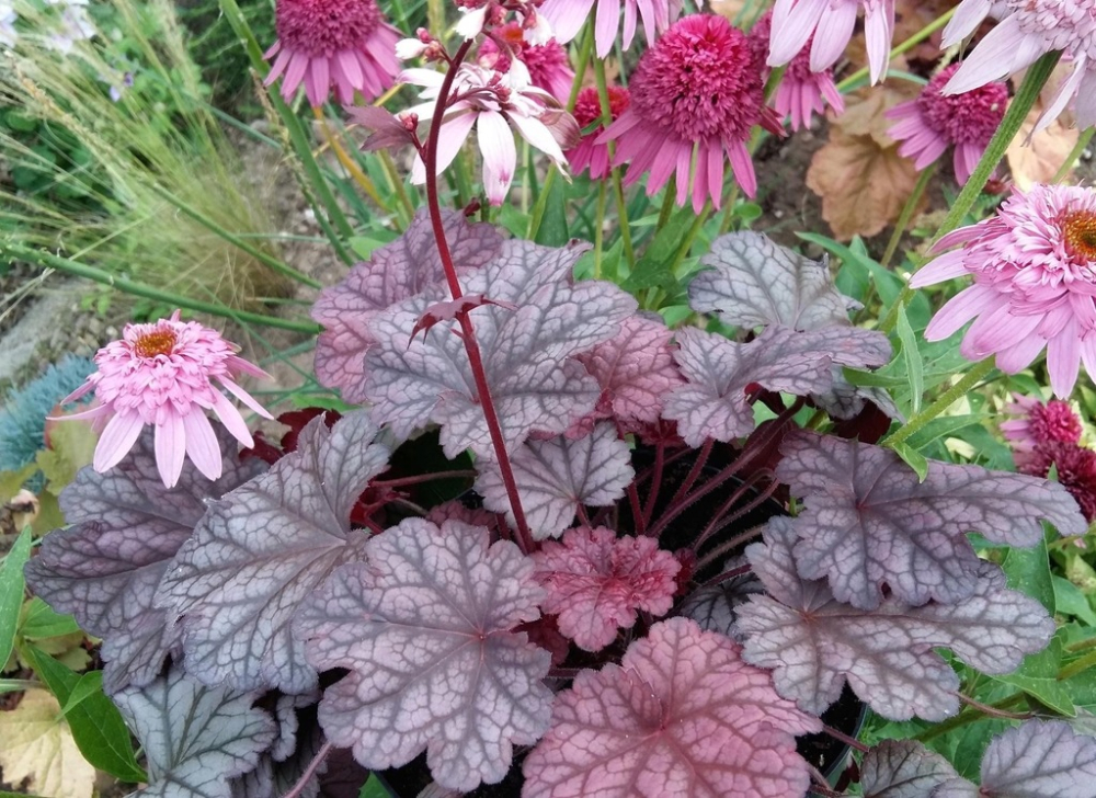 Anbau: Benötigt halbschattigen und schattigen Standort, kann aber auch in der Sonne wachsen. Wenn es im Vollschatten gepflanzt wird, kann es bei manchen Arten zu einem langsameren Wachstum kommen. Heuchera benötigt für gutes Wachstum und Vitalität unbedingt einen durchlässigen Humusboden.