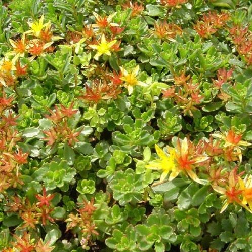 Eigenschaften: Reichblühendes Fetthenne ist ein Bodendeckergestein mit einer Flut goldgelber Blüten, die in den heißen Sommermonaten an der Pflanze erscheinen. Die Blätter sind länglich, oval und haben einen unregelmäßig gezackten Rand. Im Winter nimmt das Laub eine tiefrote Farbe an. Kalksteine haben bodendeckende Eigenschaften und bilden in kurzer Zeit einen dichten Teppich. Es eignet sich perfekt für Dachgärten und Staudenteppiche, wo durch die Kombination wunderschöne Muster entstehen. Sie lassen sich gut mit Zistrosen und anderen Steinpflanzen kombinieren.