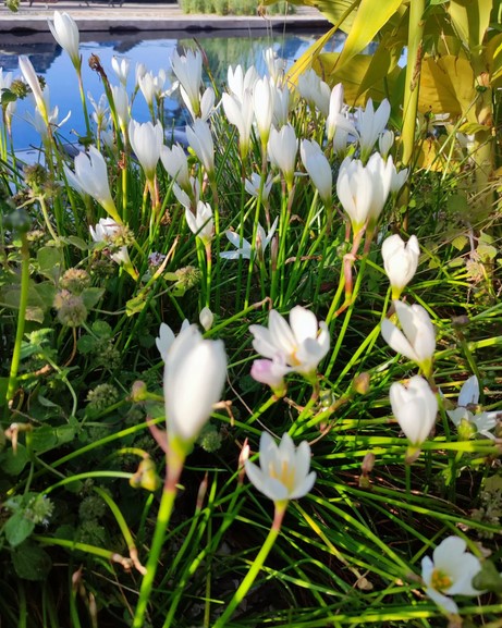 Eigenschaften: Die reinweiße Zephirblume stammt aus Südamerika und wird sowohl als Zierpflanze im Blumenbeet als auch in Töpfen kultiviert. Es handelt sich um eine Zwiebelpflanze, deren Blüten Safranblüten ähneln. Die weißen Blüten wachsen an aufrechten Stielen und blühen vom Spätsommer bis zum Herbst. In Gruppen gesetzt erzielen die Blumen einen schönen dekorativen Effekt. Die schmalen Blätter bilden eine Grundrosette.