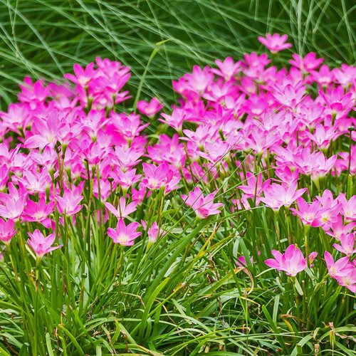 Eigenschaften: Die Reinweiße Zephirblume stammt aus Südamerika und wird als Zierpflanze im Beet sowie in Töpfen kultiviert. Es handelt sich um eine Zwiebelpflanze, deren rosa Blüten Safranblüten ähneln. Die Blüten wachsen auf aufrechten Stielen und blühen von Spätsommer bis Herbst. In Gruppen angeordnet erzeugen sie einen wunderschönen Effekt. Die schmalen Blätter bilden eine bodennahe Rosette.