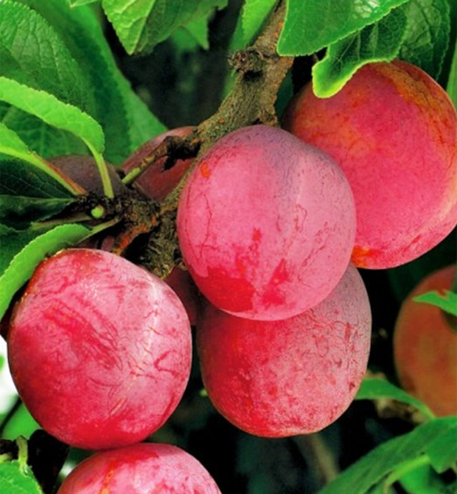 Eine frühe Reneklode-Sorte mit großen, attraktiven Früchten in rosa bis roter Farbe.