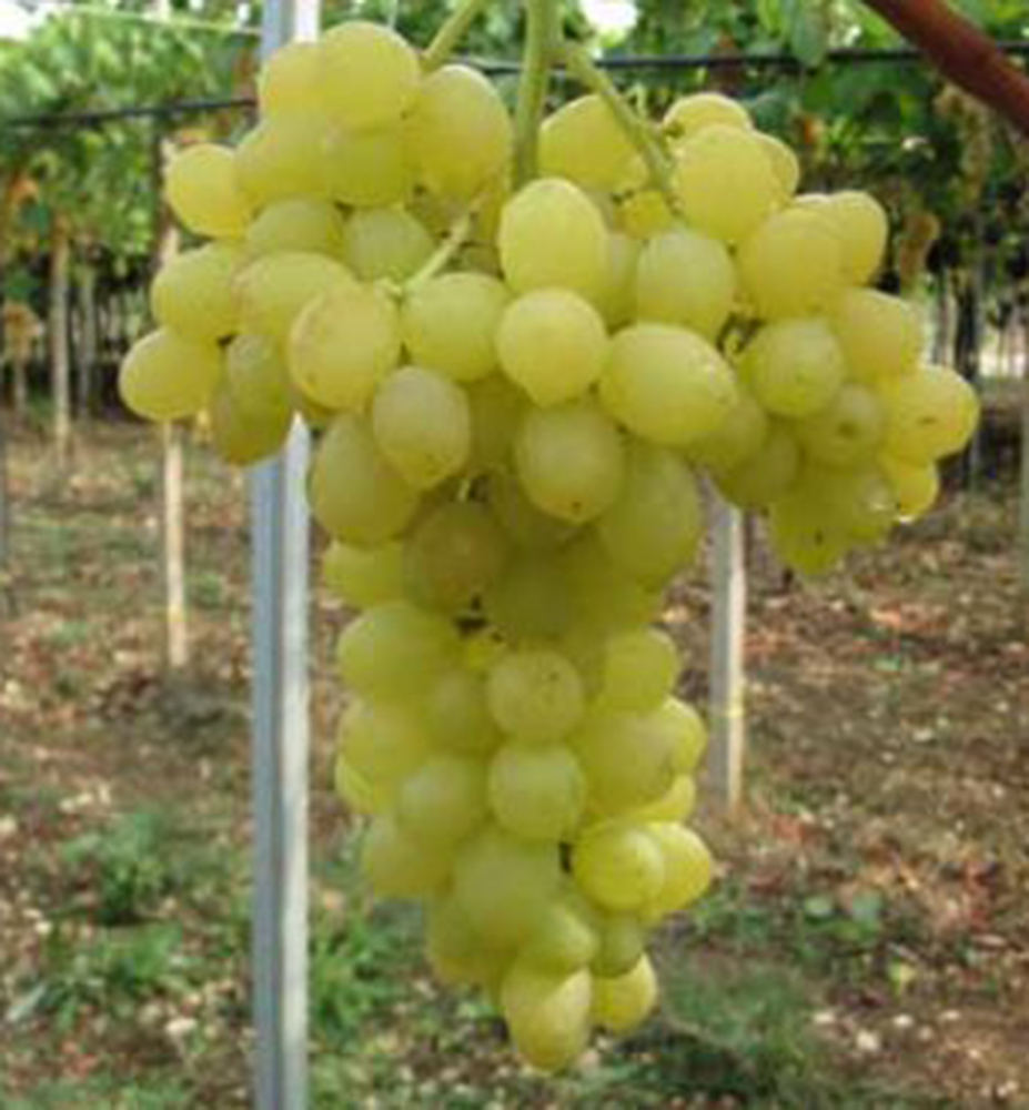Eigenschaften: ´REGAL SEEDLESS‘ ist eine kernlose Tafeltraubensorte, die aus der Kreuzung der Sorten ´Datal‘ und ´Centennial Seedless‘ hervorgegangen ist. Sie zeichnet sich durch kräftigen Wuchs, hohe Vitalität und eine gleichmäßige Fruchtbarkeit aus. Die Trauben sind mittelgroß bis groß und kegelförmig. Die Beeren sind groß, elliptisch, gelbgrün und kernlos. Das Fruchtfleisch ist fest, knackig und saftig, mit einem angenehm süßen Geschmack und leicht fruchtigen Noten. Die Reifezeit ist mittelfrüh und liegt in der Regel zwischen Ende August und Anfang September.