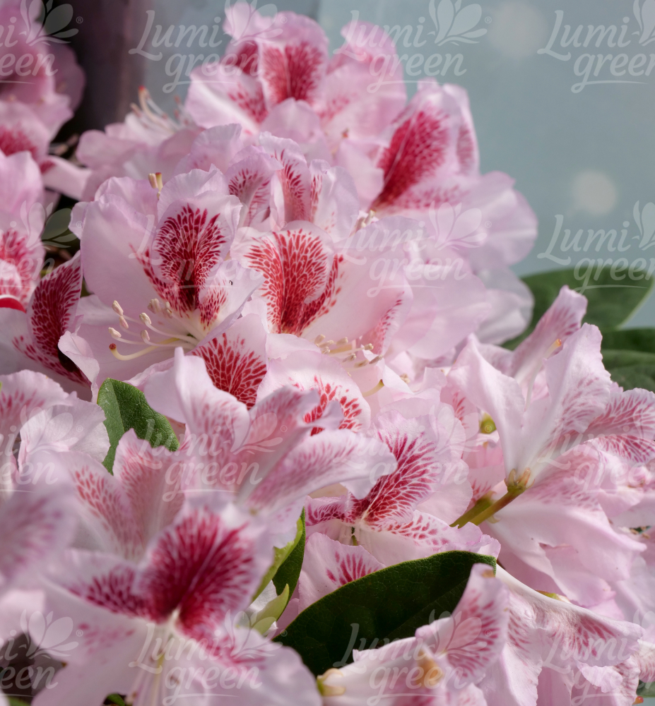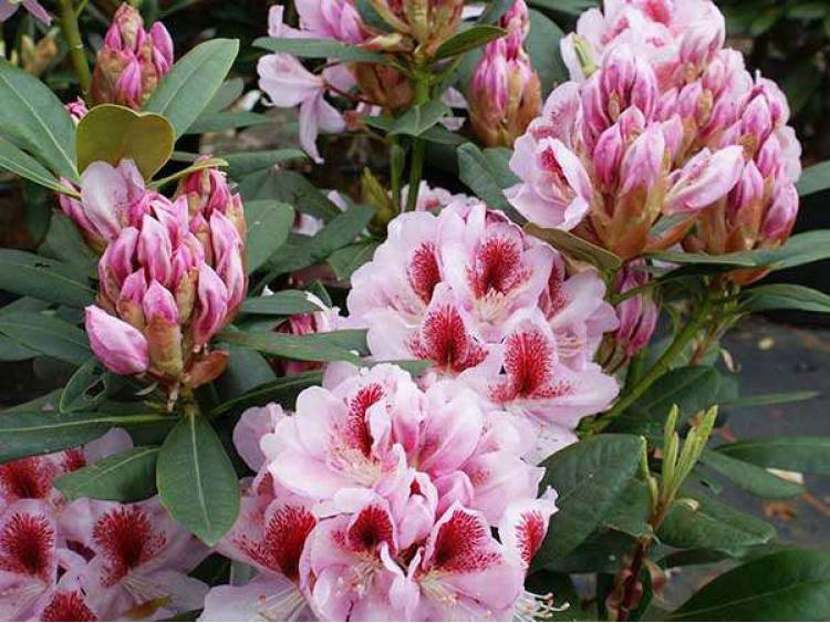Eigenschaften: Rhododendron ´BELAMI‘ gehört zu den Neuheiten unter den Rhododendron-Sorten. Von Mitte Mai bis Anfang Juni beeindruckt er mit großen, markanten rosa-weißen Blüten. Die kontrastierende rosarote Zeichnung verleiht der Sorte zusätzliche Attraktivität. Die Ränder der Blütenblätter sind leicht gewellt. Der Strauch erreicht eine Höhe von 1–1,8 m und wächst symmetrisch. Die Blätter sind dunkelgrün und halbglänzend.