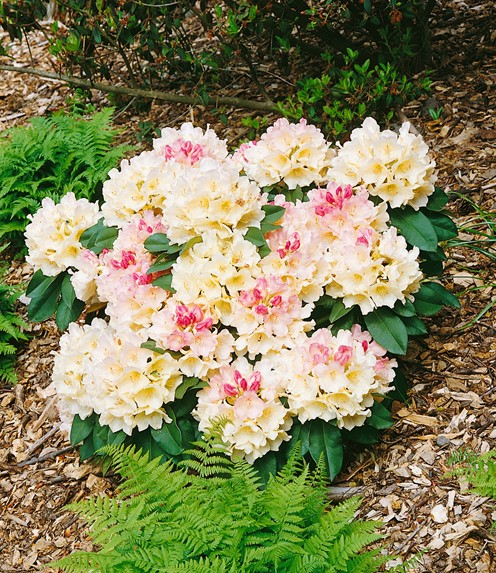Eigenschaften: Rhododendron ´GOLDEN TORCH´ ist ein luxuriöser, immergrüner Zierstrauch mit kompaktem Wuchs. Die Triebe tragen große, ledrige Blätter von matt dunkelgrüner Farbe. Im Mai sind die Blätter während der Blütezeit fast unsichtbar, da sie von wunderschön gefärbten Blüten in sanften Rosa- und Gelbtönen überdeckt werden. Die Sorte erreicht eine Höhe von 1–1,3 m und eignet sich hervorragend zur Pflanzung mit anderen Rhododendron-Sorten sowie Nadelbäumen.