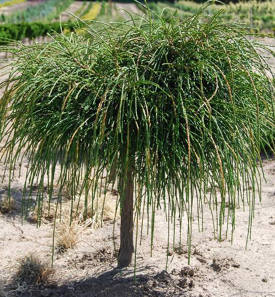 Eigenschaften: Der wirklich gelungene Riesen-Lebensbaum ´WHPCORD´-Kultivar fällt sofort ins Auge. Es handelt sich um eine zwergwüchsige Sorte mit sehr originellen Trieben, die erstmals in einer amerikanischen Baumschule auf den Markt gebracht wurde. Ihre glänzenden, artikulierten Triebe sind lang, wachsen aus der Mitte des Strauchs und hängen bogenförmig herab, wodurch eine interessante „Brunnen“-Form entsteht. Die Triebe erinnern stark an Haare. Sie haben ein frisches Grün, das im Winter in dunkelgrüne bis bräunliche Töne übergeht. Diese Sorte ist ideal in der Nähe von Pools oder Teichen, da sie keine Nadeln oder Früchte abwirft. Besonders beeindruckend wirkt sie in großen, dekorativen Pflanzgefäßen auf Balkonen oder Terrassen. Sie ist das ganze Jahr über ein attraktiver Strauch.