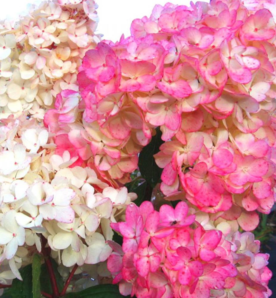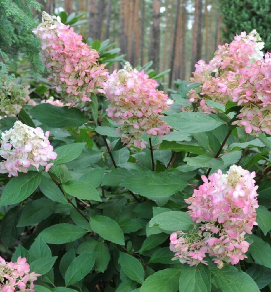 Eigenschaften: Die Hortensie „PINK LADY“ bildet einen dominanten, reich blühenden Strauch. Im Sommer blüht sie an kräftigen, aufrechten Trieben mit großen, kegelförmigen Blüten von cremeweißer Farbe. Im Herbst verfärben sich die Blüten blassrosa. Die Blätter sind oval, mittelgroß und dunkelgrün. Für ein gutes Wachstum benötigen sie keinen sauren Boden. Diese Sorte gedeiht am besten und gedeiht an einem sonnigen Standort, allerdings muss der Bereich um die Pflanze ausreichend mit Mulch bedeckt sein, damit die Wurzeln nicht austrocknen.