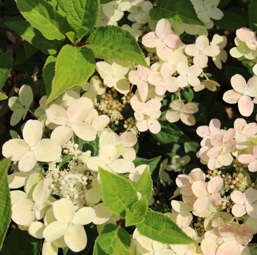 Eigenschaften: Hydrangea paniculata „POLESTAR“ ist eine Zwergsorte, die eine Höhe von ca. 50 cm erreicht. Die Blütezeit ist lang und reicht von Mai bis Oktober. Die Blüten beginnen in buttergelben Gewändern zu blühen und nehmen später einen rosa Unterton an. Dank ihrer geringeren Höhe eignen sie sich auch zur Bepflanzung in Töpfen oder Kübeln. Die Blätter sind oval, mittelgroß und dunkelgrün.