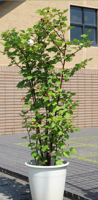Charakteristik: Die Himbeere ´TOWER HARA´ ist eine säulenförmige Sorte mit natürlich aufrechtem und schmalem Wuchs, die keine Rankhilfe benötigt und sich ideal für die Kultur in Töpfen auf Balkonen oder Terrassen eignet. Sie bildet einen kompakten Strauch mit mehreren kräftigen, aufrecht wachsenden Trieben, die eine Höhe von 120 – 200 cm erreichen. Die Früchte sind groß (ca. 2 cm), leuchtend rot, saftig und aromatisch, mit einem angenehm süßen Geschmack. Sie reifen von Juni bis August und eignen sich sowohl zum Frischverzehr als auch zur Weiterverarbeitung – etwa für Konfitüren, Desserts oder zum Einfrieren.