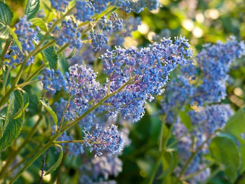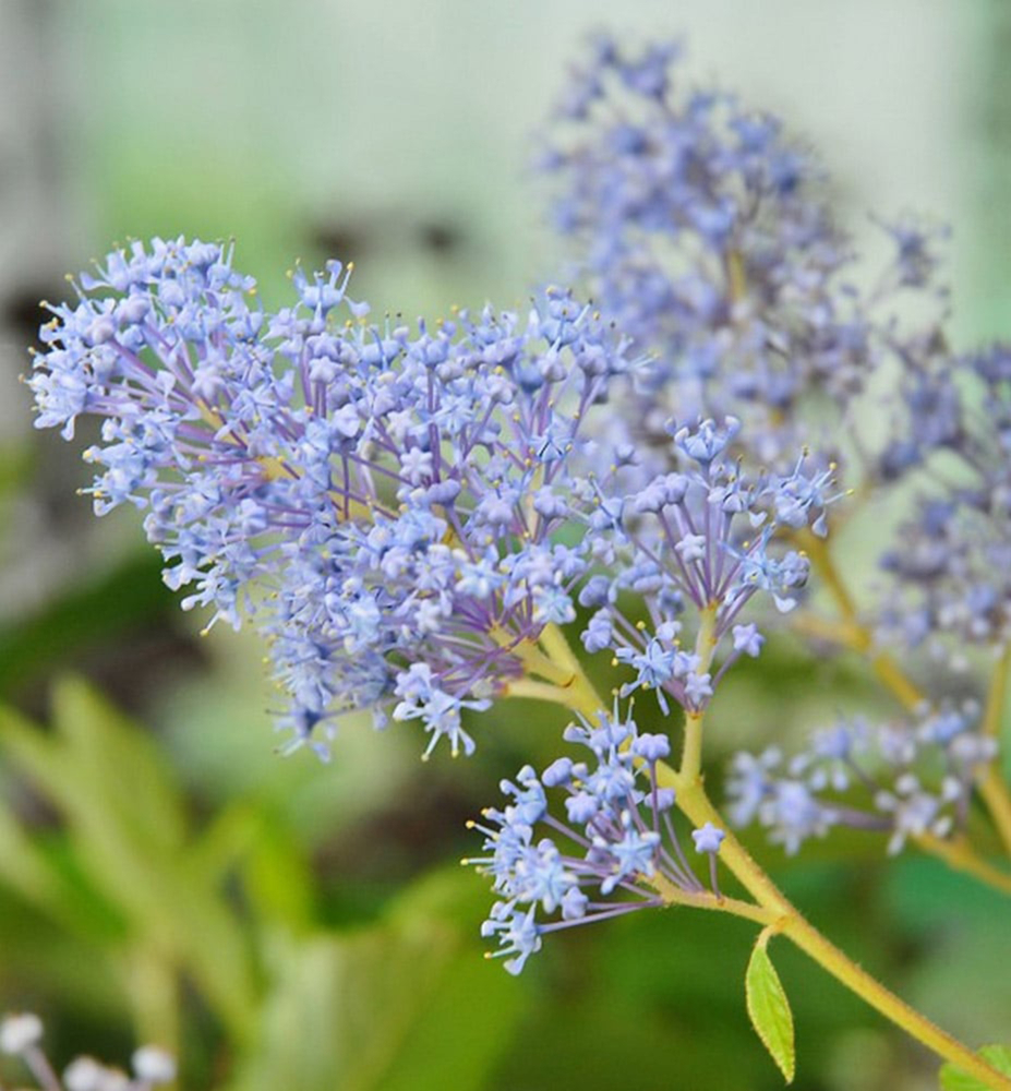 Eigenschaften: Die Säckelblume stammt aus Kalifornien und Mexiko und wird auch Kalifornischer Flieder genannt. Die Sorte ´GLOIRE DE VERSAILLES´ wurde in Frankreich gezüchtet. Sie wächst als dichter, abgerundeter Strauch mit einer Höhe von 1–1,5 m und ähnlicher Breite. Besonders auffällig ist die lange Blütezeit von Juli bis Oktober. Kleine blauviolette Blüten bilden lange aufrechte Blütenstände, die an rötlichen Trieben erscheinen. Die Blätter sind breitoval, hellgrün, leicht glänzend und aromatisch. Im Garten kommt die Pflanze als kleiner Solitär oder als farblicher Akzent zu anderen Sträuchern in Pastelltönen besonders zur Geltung.
