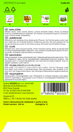 Eigenschaften: Die ¼u¾ok-Aubergine „KRASAN“ ist eine mittelfrühe, sehr fruchtbare Sorte. Die Früchte sind eiförmig mit glänzender Oberfläche und festem, cremeweißem Fruchtfleisch. Sie werden unmittelbar nach der charakteristischen Färbung gesammelt. Es eignet sich zum Kochen und Einmachen. Wir ernten die Früchte von August bis Oktober.