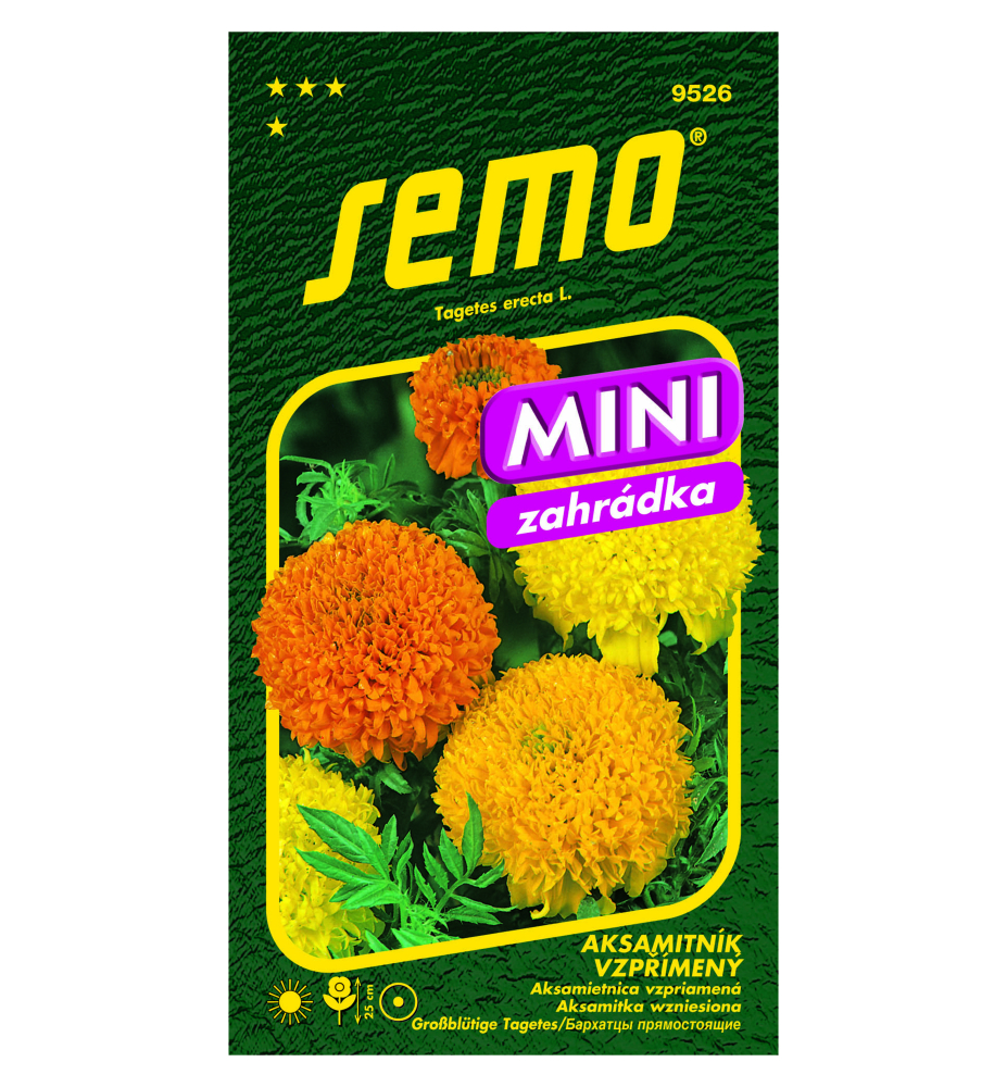 Eigenschaften: Velvets gehören zu den bekanntesten einjährigen Pflanzen, die auch als afrikanische oder stinkende Pflanzen bekannt sind. Die Blüten verbreiten einen spezifischen Duft um sich herum, der auf natürliche Weise schädliche Insekten abwehrt. Sie blühen sehr lange, die Blüten bilden sich die ganze Saison über kontinuierlich. Die Samtpflanze „CUPIDON“ ist eine niedrige einjährige Pflanze mit vollen Blüten. Die Mischung enthält gelbe, zitronengelbe und orangefarbene Blüten. Die Blüten eignen sich zum Schneiden, sie halten in einer Vase 10 oder mehr Tage. Die Blätter sind geschnitten, dunkelgrün.