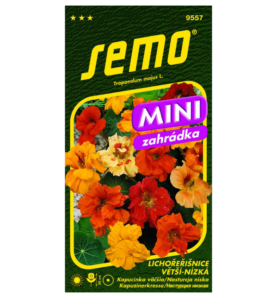 Eigenschaften:Die Kapuzinerkresse ist eine schnell wachsende einjährige Pflanze, die aus Südamerika stammt. Die Sorte „BIJOU DOUBLE“ blüht mit röhrenförmigen Blüten in gelb-orangen bis leuchtend roten Farben. Die Blätter sind rund, frischgrün. Es wird in ein Blumenbeet oder in Blumenkästen gepflanzt. Blüten und Blätter können gegessen und in verschiedenen Salaten und Aufstrichen verwendet werden. Paprika ist ein natürliches Antibiotikum, da es bakterizide Substanzen enthält und sich zur Behandlung von Entzündungen der Harnwege und Nieren eignet. Gleichzeitig dient es der Unterstützung der Immunität und der Stärkung der körpereigenen Abwehrkräfte.