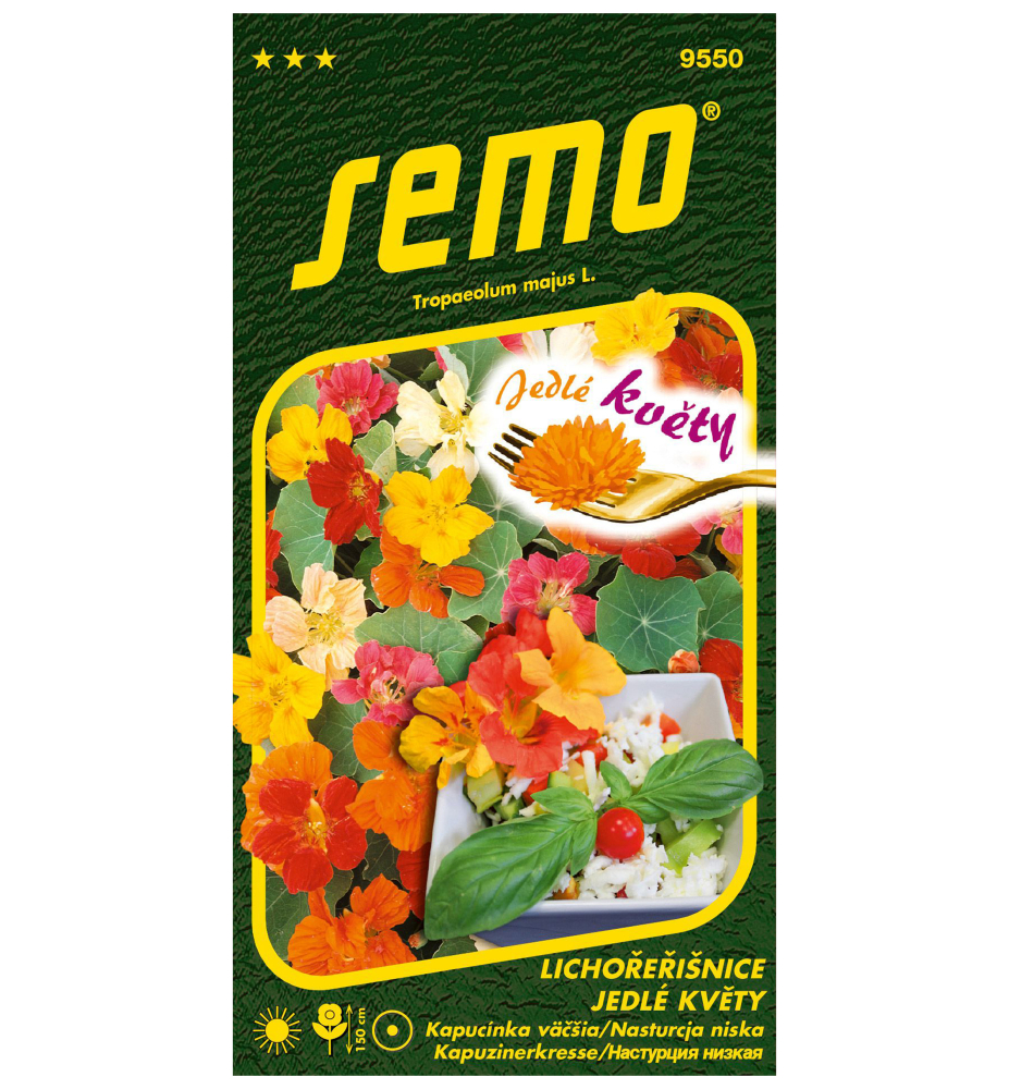 Eigenschaften:Die Kapuzinerkresse ist eine schnell wachsende einjährige Pflanze, die aus Südamerika stammt. Es wird in ein Blumenbeet oder in Töpfe gepflanzt. Die Mischung enthält die Samen von Pflanzen, die mit cremeweißen, gelben, orangefarbenen und roten Blüten blühen. Die Blüten haben eine röhrenförmige Form und blühen von Juni bis zum ersten Frost. Die Blätter sind rund, frischgrün. Blüten und Blätter können gegessen und in verschiedenen Salaten und Aufstrichen verwendet werden. Die Blüten haben einen angenehm würzigen Geschmack ähnlich der Brunnenkresse und sind ein begehrter Bestandteil von Salaten. Paprika ist ein natürliches Antibiotikum, da es bakterizide Substanzen enthält und sich zur Behandlung von Entzündungen der Harnwege und Nieren eignet. Gleichzeitig dient es der Unterstützung der Immunität und der Stärkung der körpereigenen Abwehrkräfte.