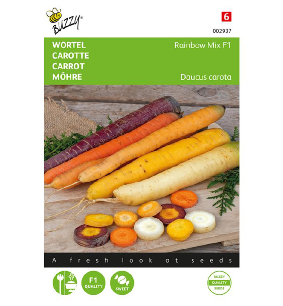 Eigenschaften:Die Samenpackung enthält eine Mischung aus schmackhaften und gesunden Karotten, die sich durch die vielfältige Färbung der Wurzeloberfläche auszeichnen. Es ist pflegeleicht. Diese Sorte ist auch wegen ihres süßen und milden Geschmacks beliebt. Die saftige Wurzel enthält viele Vitamine und Nährstoffe.