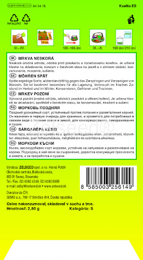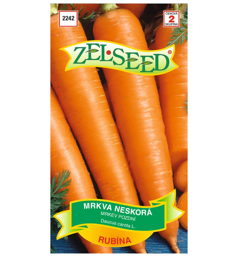 Eigenschaften: Die Karotte „RUBÍNA“ ist eine späte, ertragreiche Sorte mit einer sehr guten Haltbarkeit (180 Tage). Es kann auch zum direkten Verzehr, für alle Arten der Küchenzubereitung und zum Trocknen verwendet werden. Die Wurzel ist zylindrisch, etwa 17 cm lang und orangerot gefärbt. Das Fruchtfleisch hat einen ausgezeichneten Geschmack, ist weich, intensiv gefärbt und hat einen höheren Gehalt an Beta-Carotin. Es ist resistent gegen Blüte, Rissbildung und Verzweigung der Wurzeln.