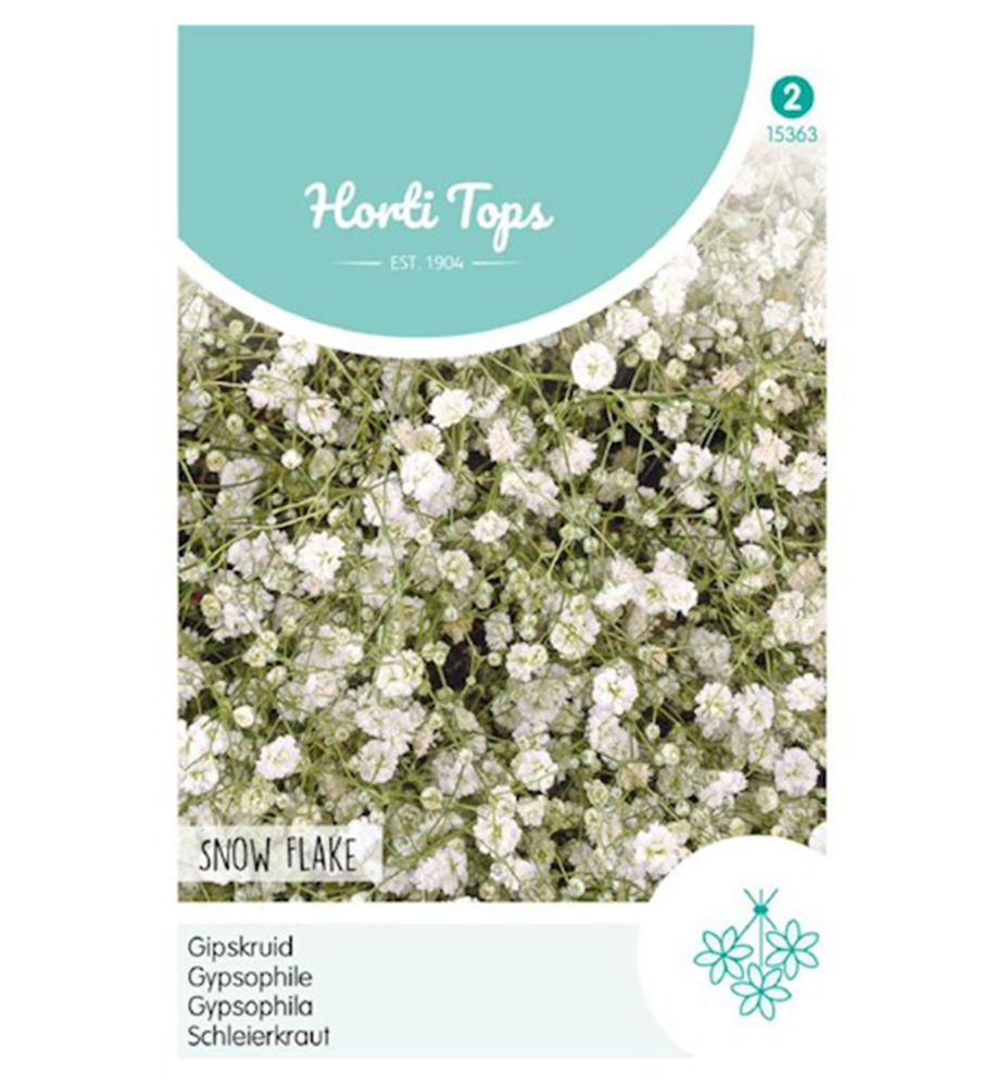Eigenschaften:Das wunderschöne Schleierkraut „Snow Flake“ ist eine Staude, die eine Flut zarter schneeweißer Blüten hervorbringt, weshalb sie auch den Namen „Brautschleier“ trägt. Die Blumen eignen sich hervorragend zum Schneiden, sie werden frisch und getrocknet als Ergänzung zu Dekorationen, insbesondere Hochzeitsdekorationen, verwendet. Er wird etwa 80 cm hoch.