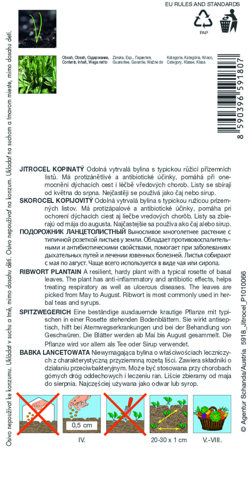 Anbau: Wegerichsamen können von Frühling bis Herbst in Reihen im Abstand von 20-20 cm ausgesät werden. 30 cm. Der Anbau ist nicht schwierig und passt sich