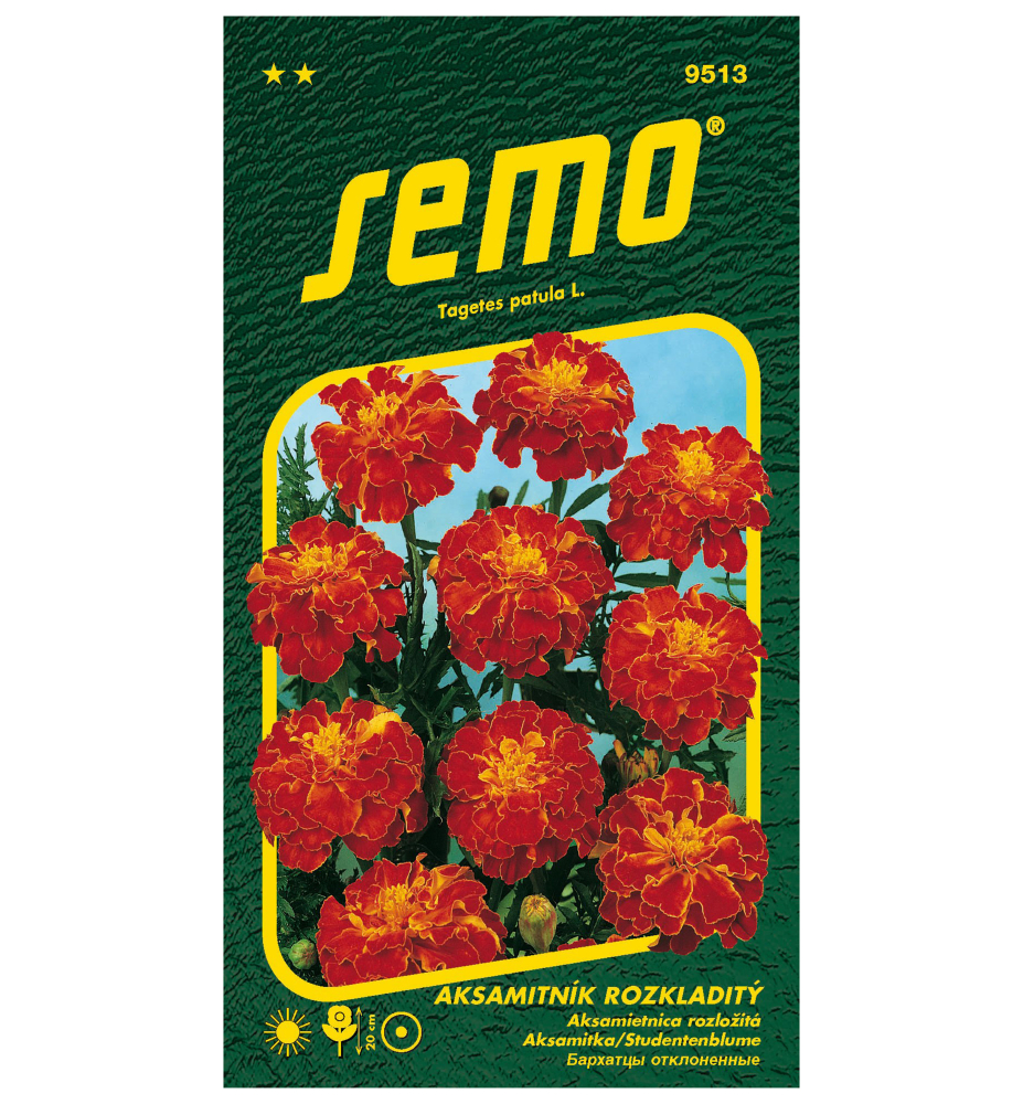 Eigenschaften: Velvets gehören zu den bekanntesten einjährigen Pflanzen, die auch als afrikanische oder stinkende Pflanzen bekannt sind. Die Blüten verbreiten einen spezifischen Duft um sich herum, der auf natürliche Weise schädliche Insekten abwehrt. Sie blühen sehr lange, die Blüten bilden sich die ganze Saison über kontinuierlich. Diese Sorte hat braunrote Blüten mit einem markanten gelben Zentrum, das sich in der Mitte der geschnittenen Blätter bildet. Sie erreicht eine Höhe von max. 20 cm. Sie eignet sich für den Anbau in Töpfen auf Balkonen, aber auch in dekorativen Blumenbeeten.