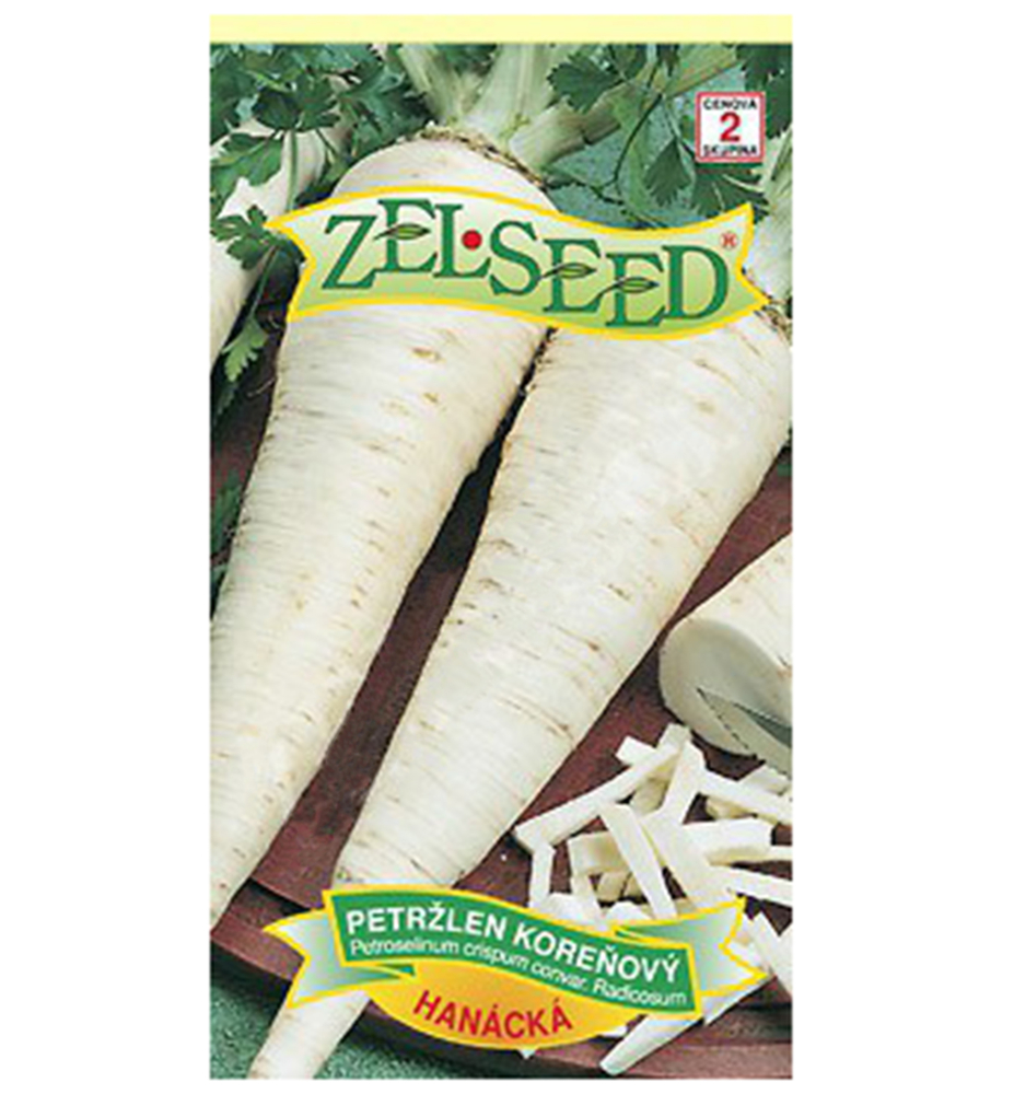 Eigenschaften: Die Petersilienwurzel „Hanácky“ ist eine späte Petersiliensorte, die sich aufgrund der hohen Resistenz der Pflanze gegen Lagerkrankheiten und Wurzelrost besonders für die Langzeitlagerung eignet. Sie hat mittellange, kegelförmige Wurzeln mit glatter Oberfläche, die 15–18 cm groß sind. Das Fruchtfleisch ist cremeweiß und zudem sehr aromatisch. Es wird nicht nur zum direkten Verzehr, sondern auch zur Lagerung und Konservenherstellung verwendet.