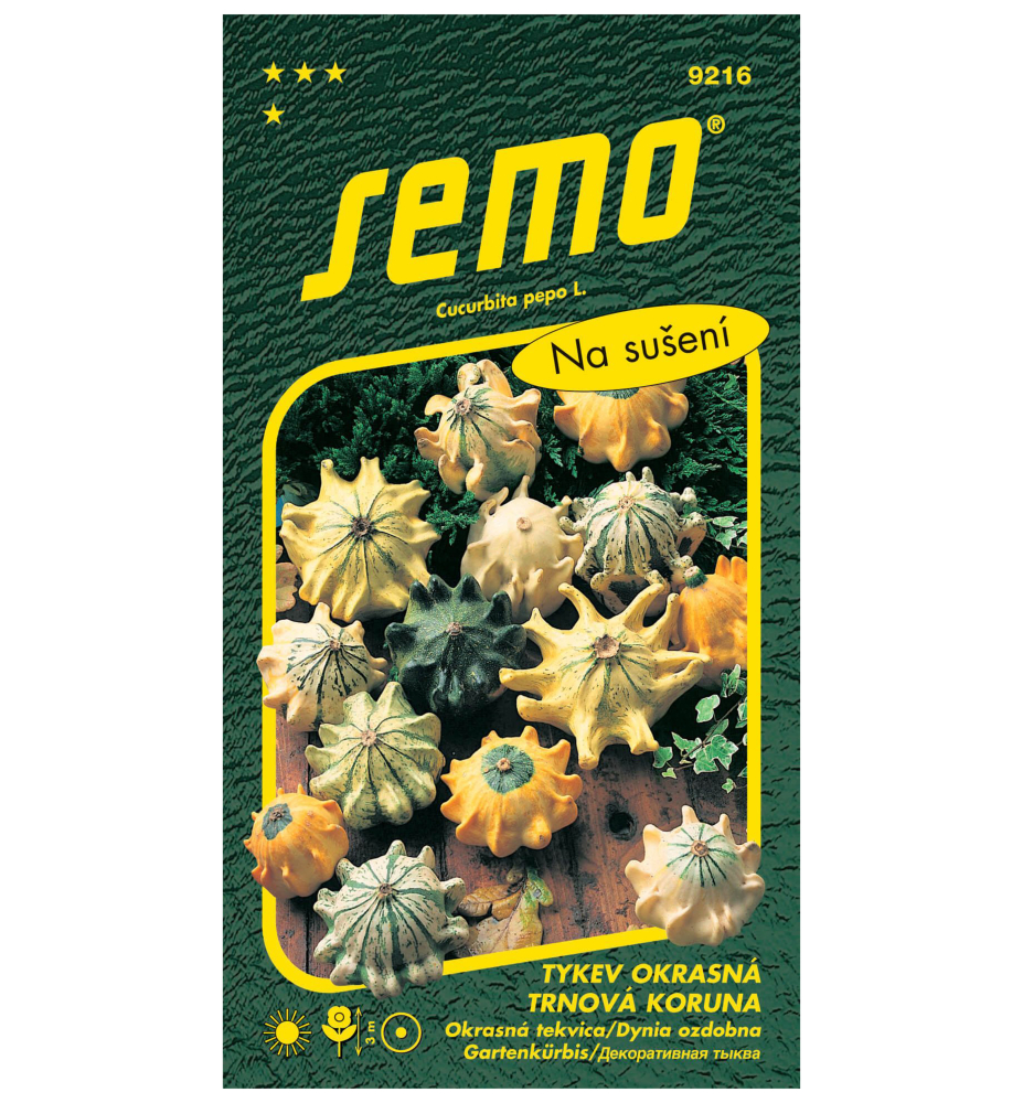 Eigenschaften:Zierkürbis „Dornenkrone“ besticht durch seine bizarre Form, er lässt sich in verschiedenen Farben einfärben. Es dient als Dekoration für herbstliche und sommerliche Blumenarrangements am Fenster, vor der Tür, aber auch im Innenbereich. Der Zierkürbis wächst wie eine Schlingpflanze bis zu einer Höhe von ca. 3 m. Wir können ihn in der Nähe der Stütze pflanzen.