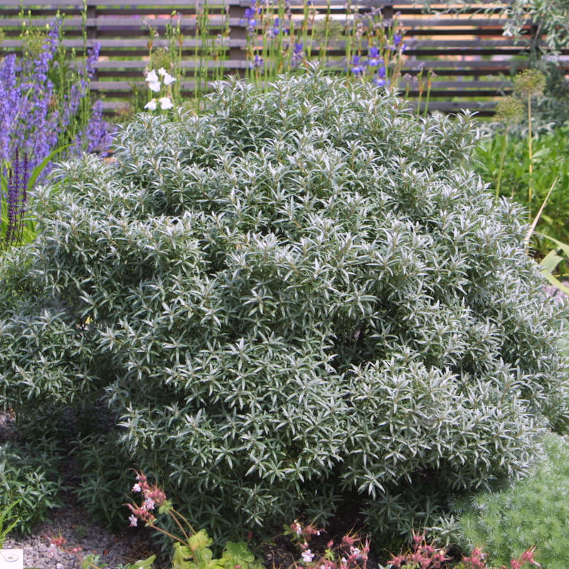 Ein männlicher Zwerg-Sanddorn mit kugelförmigem Wuchs, ideal auch für Ziergärten.