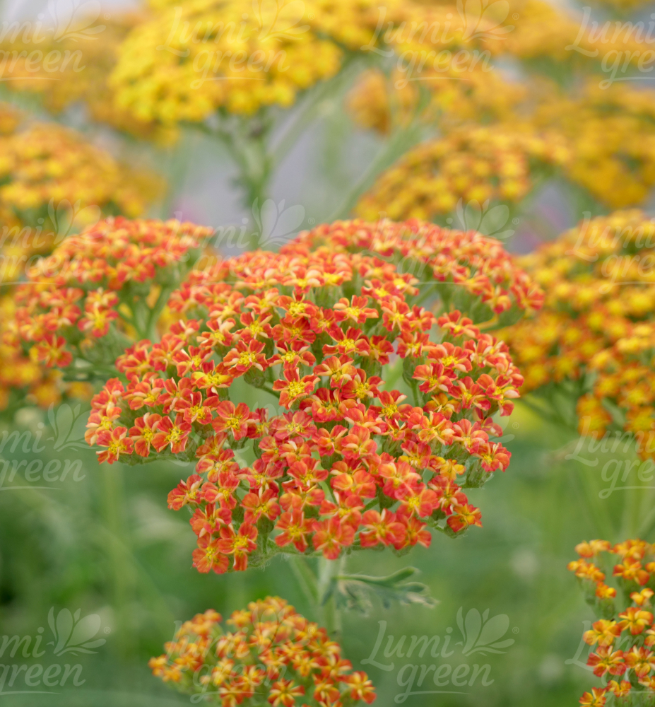 Eigenschaften: Die Schafgarben aus der Kollektion ´SASSY SUMMER´ sind höher, eher blühend, mit intensiv gefärbten Blüten. Die Sorte ´SASSY SUMMER SUNSET´ blüht den ganzen Sommer über mit orangefarbenen Blüten, die sich im Laufe der Saison gelb verfärben. Die flachen Blütenstände wachsen an hohen, kräftigen Stielen. Die Blätter sind silbriggrün, aromatisch und fein geschnitten, ähnlich einem Farn. Sie wird 70–90 cm hoch. Schafgarbe ist eine beliebte Staude, die sich zum Pflanzen in gemischten Blumenbeeten eignet. Es lässt sich hervorragend mit Echinacea, Monarda, Salbei und Phlox kombinieren. Blumen eignen sich sowohl für frische als auch für getrocknete Arrangements.