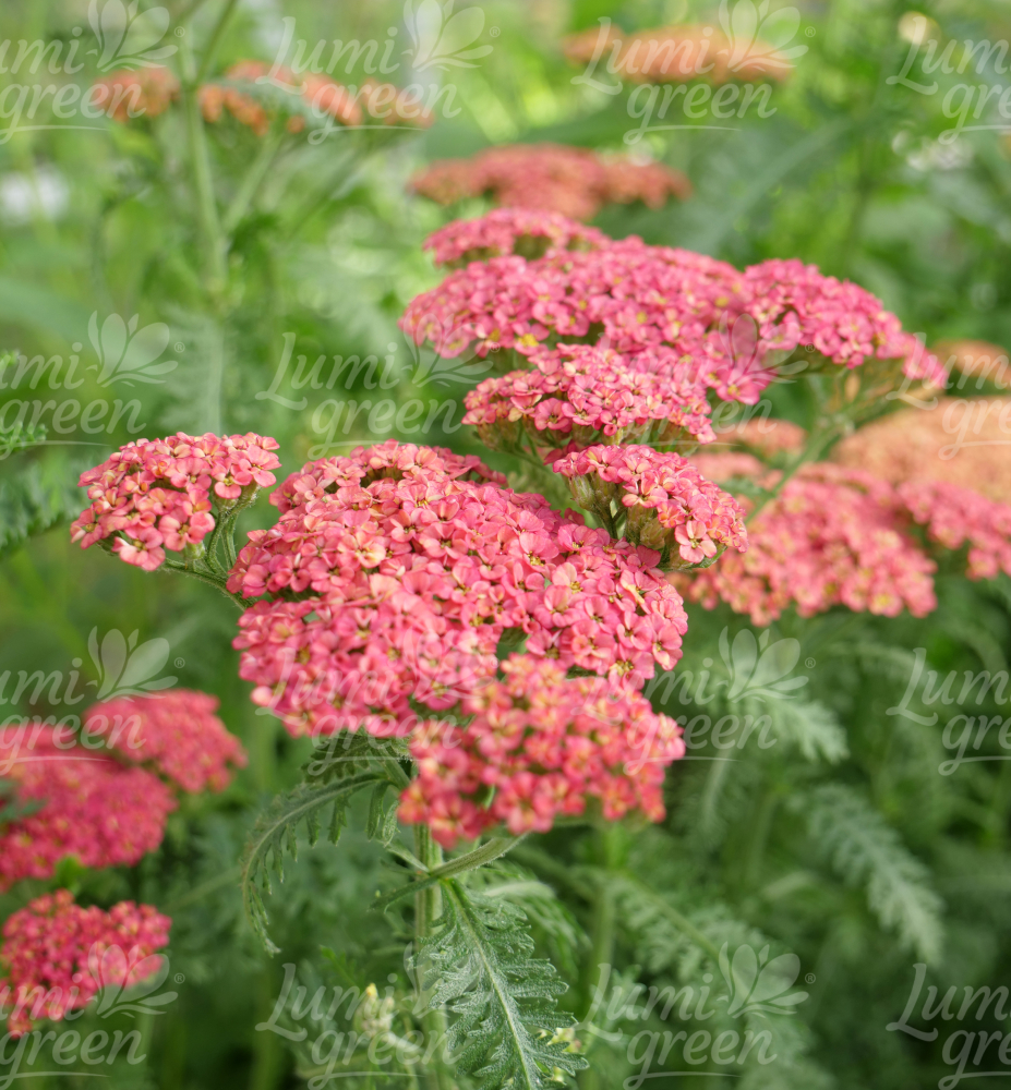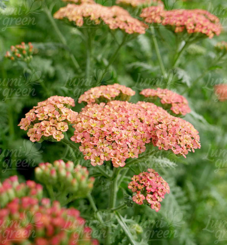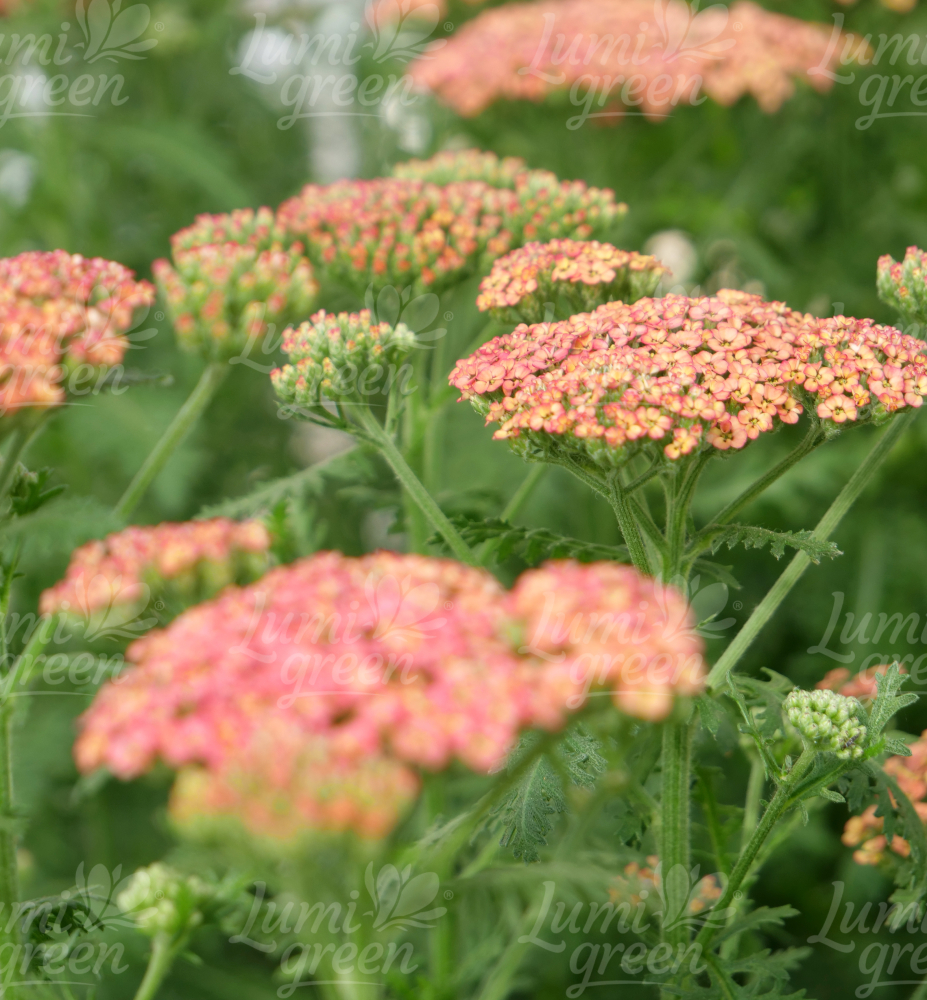Eigenschaften: Die Schafgarbe aus der Kollektion ´SASSY SUMMER´ sind höher, eher blühend, mit intensiv gefärbten Blüten. Die Sorte ´SASSY SUMMER TAFFY´ ist eine höhere Staude, die Trauben mit einer Höhe von 70–90 cm produziert. Von Juni bis September blüht sie mit lachsrosa Blüten. Mit zunehmendem Alter der Blüten hellt sich die Farbe zu einem Pfirsichrosa auf. Die Blätter sind silbriggrün, aromatisch und fein geschnitten, ähnlich einem Farn. Schafgarbe ist eine beliebte Staude, die sich zum Pflanzen in gemischten Blumenbeeten eignet. Es lässt sich hervorragend mit Echinacea, Monarda, Salbei und Phlox kombinieren. Blumen eignen sich sowohl für frische als auch für getrocknete Arrangements.