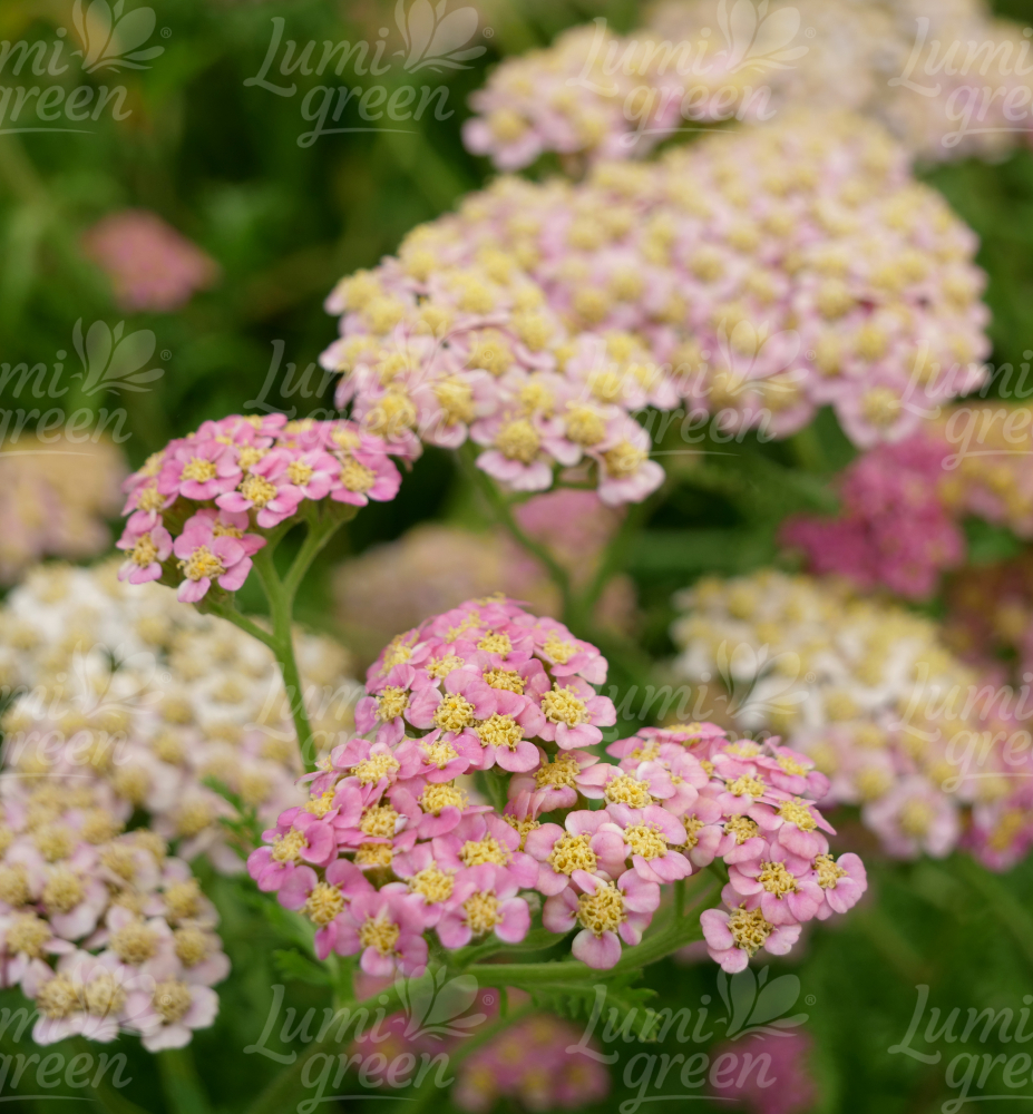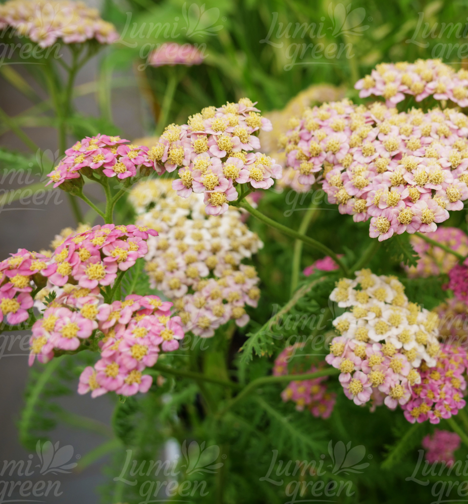 Eigenschaften: Schafgarbe ´SKYSAIL BRIGHT PINK´ ist eine beliebte moderne Sorte mit schönen rosa Blüten, die in flachen, becherförmigen Blütenständen gruppiert sind. Der Rosaton verändert sich allmählich zu blasseren Tönen. Sie blüht vom Frühsommer bis September. Die Blätter sind hellgrün. Im Erwachsenenalter erreicht er eine Höhe von etwa 60 cm. Sowohl Blätter als auch Blüten sind aromatisch. Die Blüten eignen sich besonders zum Schneiden und Trocknen für Blumensträuße. Sie lässt sich gut mit Echinacea, Monarda und Phloxen kombinieren.