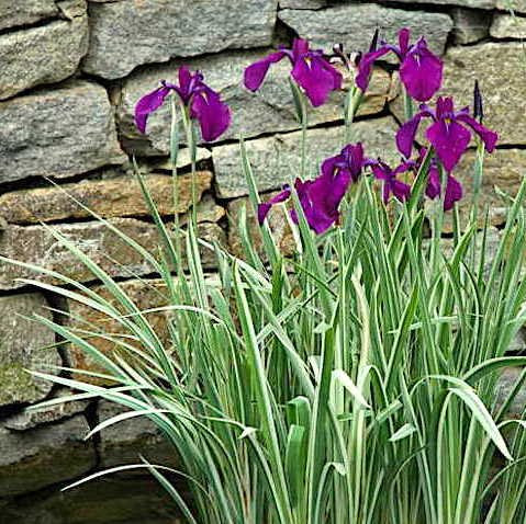 Eigenschaften: Schwertlilie ´VARIEGATA´ ist eine beliebte Staude, die durch ihre kontrastierende Blattfarbe in jedem Garten hervorsticht. Zu Beginn des Sommers erheben sich an langen Stielen tiefviolette Blüten, die durch das gelbe Muster in der Mitte der Blütenblätter noch zusätzlich betont werden. Diese Sorte wird 80–90 cm hoch. Sie eignet sich hervorragend für die Pflanzung in einem Staudenbeet, an einem Teich oder in der Gruppenbepflanzung als Rasenkante.