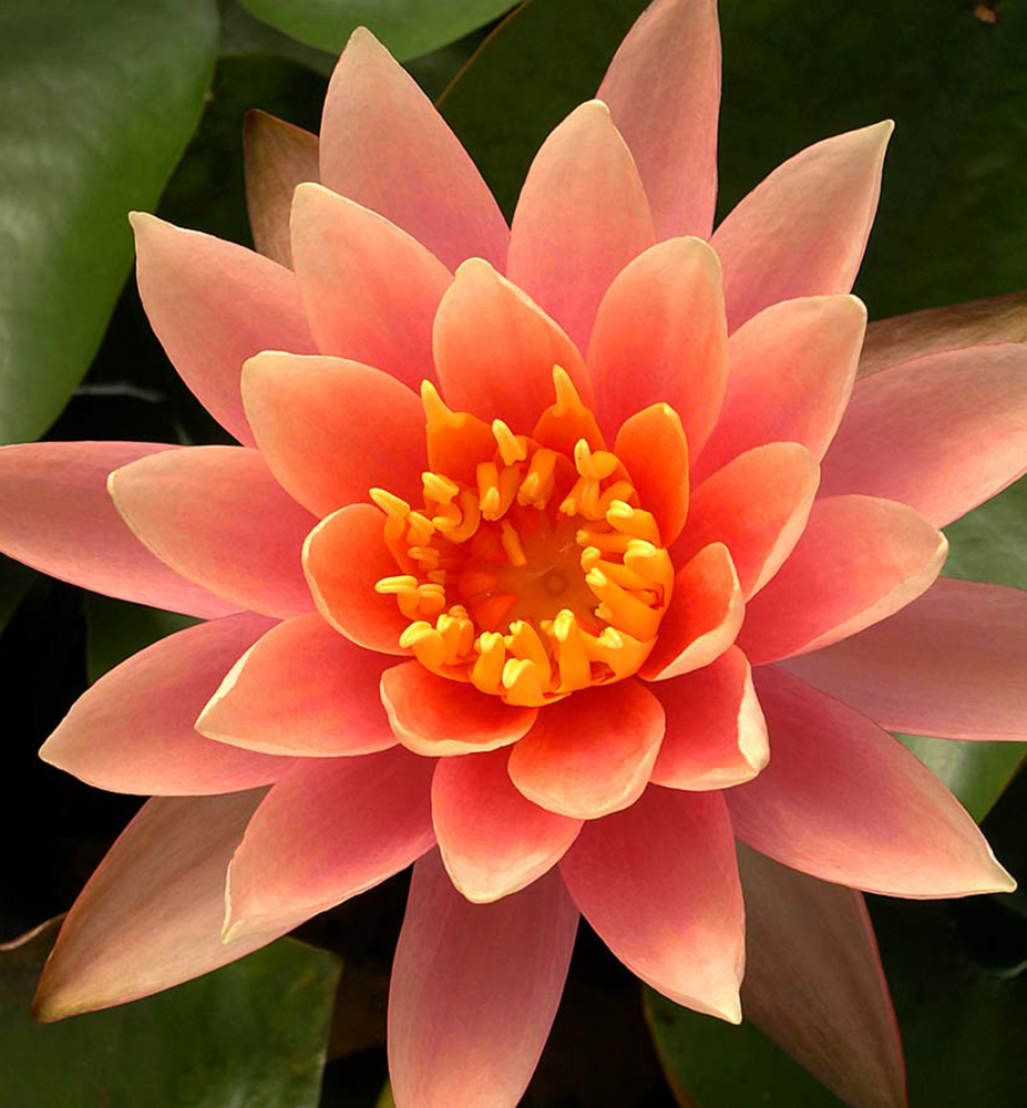 Eigenschaften: Die Seerose ´COLORADO´ ist eine Neuheit aus den USA. Sie gedeiht in stehendem Wasser unter voller Sonneneinstrahlung. Die runden, grünen Blätter bilden eine attraktive Oberfläche auf dem Teich. Von Juni bis Oktober öffnet sie ihre wunderschönen Blüten in Lachsrosa- bis Pfirsichtönen. In der Blütenmitte befinden sich zahlreiche orangefarbene Staubblätter. Die dekorativen Blüten sind ein echter Blickfang im Teich, während die Blätter gleichzeitig Schatten spenden und so das Algenwachstum hemmen.