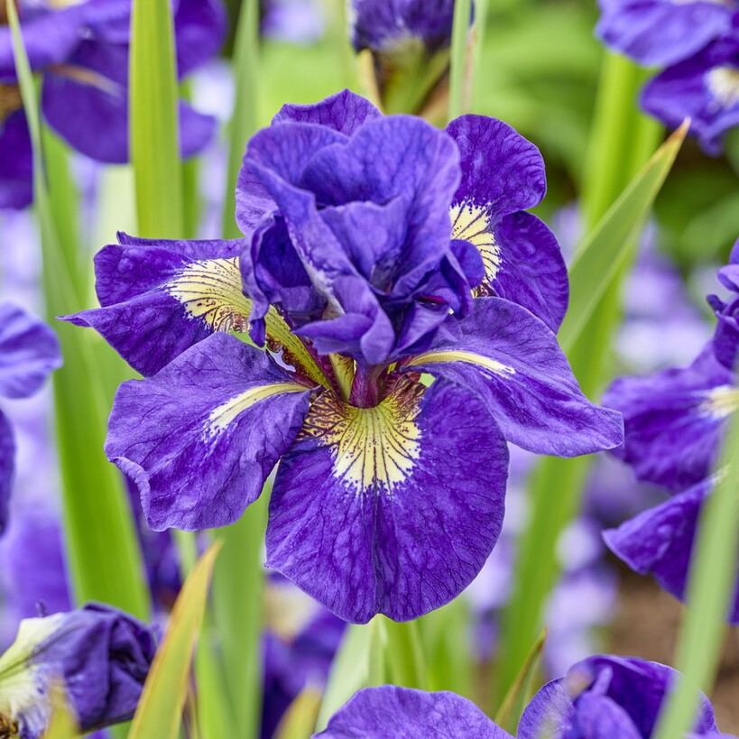 Eigenschaften: Schwertlilie ´KABLUEY´ ist eine mittelgroße Art mit einer Höhe von ungefähr 60-80 cm. Die Sorte bringt unverwechselbare Blüten mit einem Hauch Exotik und einer wunderschönen Farbkombination hervor. Die oberen Blütenblätter weisen Violett- bis Hellvioletttöne auf, während die unteren ein kontrastierendes weiß-gelbes Muster auf violett-blauem Hintergrund aufweisen. Die leicht gewellten Ränder verleihen den Blüten einen eleganten Stil. Die Sorte eignet sich hervorragend zur Bepflanzung von gemischten Staudenbeeten und sorgt dort für eine harmonische Farbkomposition. Auch als Solitärpflanze eignet sie sich gut zur Einfassung von Gehwegen. Ihre Blüten sind auch in einer Vase wunderschön und verleihen dem Interieur einen Hauch von Romantik.