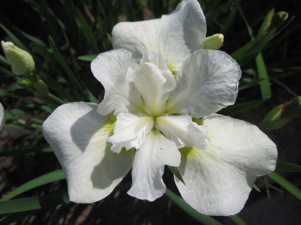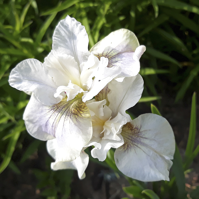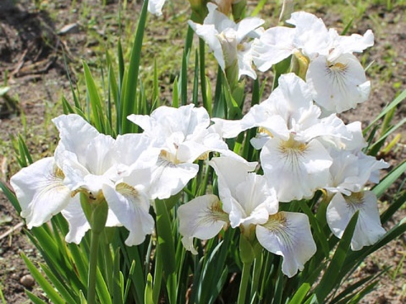Eigenschaften: Die ´Not Quite White´-Schwertlilie gehört mit einer Höhe von ca. 40-60 cm zu den mittelhohen Arten. Sie bringt mehrere Blüten an einem Stiel hervor, die auf den ersten Blick weiß erscheinen, die Blütenblätter haben jedoch eine sanfte Lavendeltönung mit einem hellgelben Muster. Die Ränder der Blütenblätter sind leicht gewellt. Besonders hervorzuheben ist die Pflanzung als Weg- oder Rasenkante in Gruppenpflanzungen, besonders gut ergänzt sie Pflanzungen in der Nähe von Teichen.