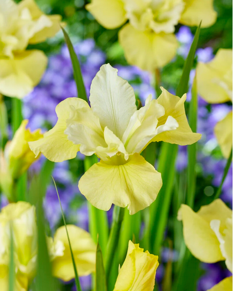 Eigenschaften: Die ausdrucksstarke Schwertlilie ´SUMMER REVELS´ zeichnet sich durch viele leuchtende Blüten in leuchtendem Gelb aus, die besonders an sonnigen Tagen hervorstechen. Sie blüht von Mai bis Juni. Die Ränder der Blütenblätter sind sanft gewellt. Die Blätter sind schmal und wachsen in Form eines üppigen Büschels.
