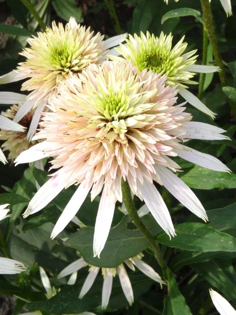 Eigenschaften: Sonnenhut ´CHERRY FLUFF®´ ist eine Staude mit kompaktem Wuchs, die von Juni bis September blüht. Lindgrüne Knospen entwickeln sich zu cremeweißen Blüten mit zartrosa und kirschroten Reflexen mit lindgrüner Mitte. Mit zunehmendem Alter der Blüten tritt die rosa Farbe stärker hervor und bildet einen guten Kontrast zu den olivgrünen Blättern. Die Pflanze wächst sehr dicht und verzweigt sich gut. Sie wird 40 - 55 cm hoch. Sie kommt in einem gemischten Staudenbeet gut zur Geltung, die Blüten eignen sich zum Schneiden in Sträuße.