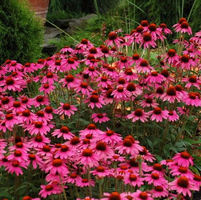 Eigenschaften: Sonnenhut ´MAGENTA PEARL®´ ist eine dekorative, unprätentiöse, mittelhohe Staude. Die Blätter sind tiefgrün, leicht rau. Sie blüht den ganzen Sommer über mit leuchtend rosaroten Blüten. Es handelt sich um eine beliebte Staude, die häufig in gemischten Blumenbeeten verwendet wird. Diese Sonnenhut gehört zur Gruppe der mittelhohen Sorten, deren Blüten eine Höhe von 40–50 cm erreichen.