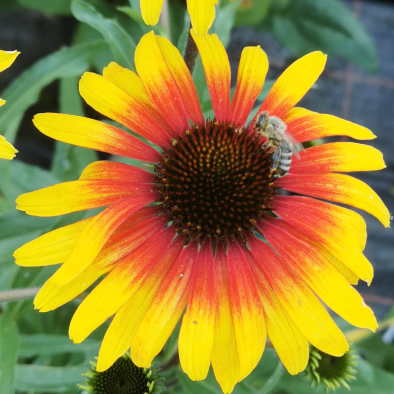 Einzigartige Echinacea mit großen, auffälligen gelb-roten Blüten.