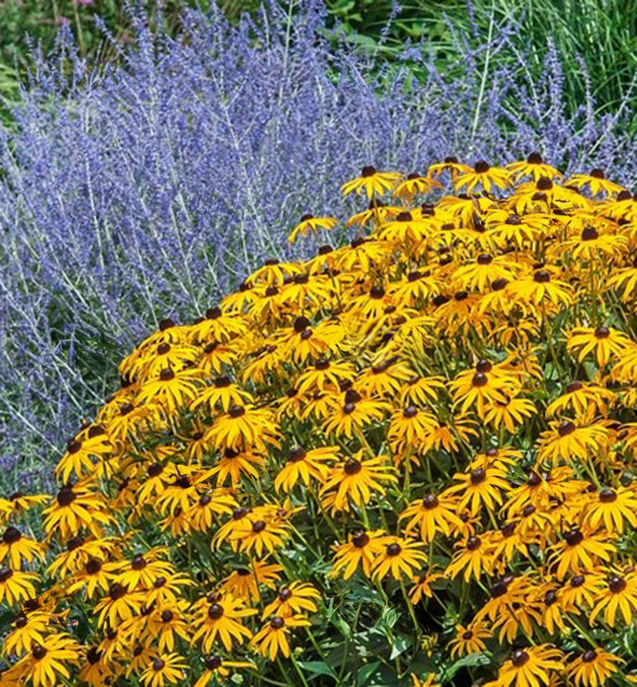 Eine beliebte, hohe Rudbeckie mit leuchtend gelben, großen Blüten, die sich auch zum Schneiden eignen.