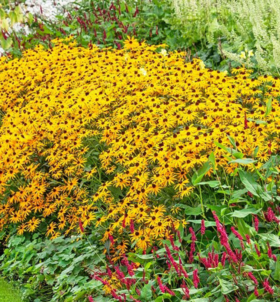 Anbau: Der ideale Standort ist ein sonniger Platz mit normalem, nährstoffreichem und durchlässigem Boden. Rudbeckia 'GOLDSTURM' lässt sich gut mit anderen ähnlichen, insbesondere asternartigen einjährigen Pflanzen oder mit feinen Gräsern kombinieren. Sie harmoniert auch hervorragend mit Primeln, Gänseblümchen, Monarden, Katzenminze, Prachtkerzen und Purpurglöckchen.