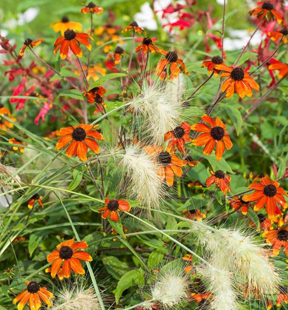 Eigenschaften: Der Kultivar ´PRAIRIE GLOW´ ist ein beeindruckender Vertreter der Sonnenhut-Gruppe und eine hervorragende Ergänzung für sommerliche Staudenbeete. Zahlreiche dünne und dicht verzweigte Stängel tragen prächtige Blüten in goldenen bis orange-mahagonifarbenen Tönen. Die Blütenmitte ist durch ein gewölbtes, dunkelbraunes Zentrum hervorgehoben. Die Pflanze wird 70–90 cm hoch. Dank ihres luftigen Wuchses eignet sie sich ideal, um Lücken in Beeten zu füllen und verleiht ihnen nicht nur kräftige Farben, sondern auch Lebendigkeit und Dynamik.