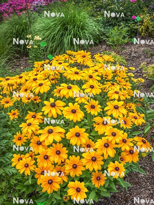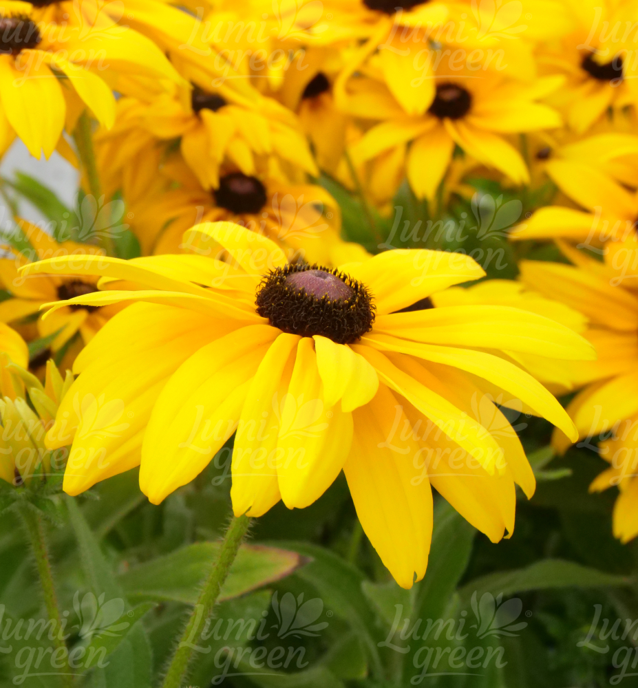 Eigenschaften:Rudbeckia aus der ´Sunbeckia´ -Serie blüht von Juni bis September mit großen gelben Blüten mit deutlich dunkler Mitte. Aus gemahlenen dunkelgrünen Blättern wachsen mehrere verzweigte Stängel. Die Blätter sind lanzenförmig mit einem gezackten Rand und markanten Adern und mit feinen Härchen bedeckt. Aufgrund ihrer Schlichtheit, ihrer langen Blütezeit bis zum ersten Frost und ihrer Langlebigkeit ist sie eine hochgeschätzte Staude.