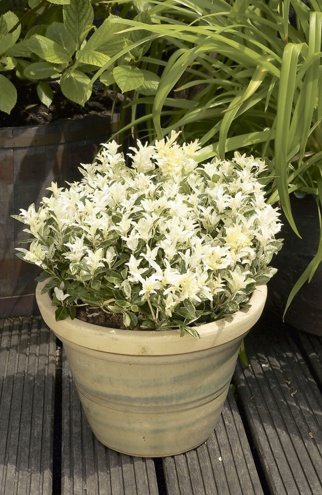 Eigenschaften: Der japanische Spindelstrauch ´PIERROLINO´ ist eine immergrüne Sorte mit kompaktem Wuchs. Die ovalen Blätter sprießen zunächst weiß und färben sich später grün. Die Pflanze verträgt Rückschnitte sehr gut und eignet sich daher hervorragend zur Formung als kleiner Solitär in Blumentöpfen oder als Heckenpflanze. Sie wächst langsam und erreicht im ausgewachsenen Zustand meist eine Höhe von bis zu 1 m.
