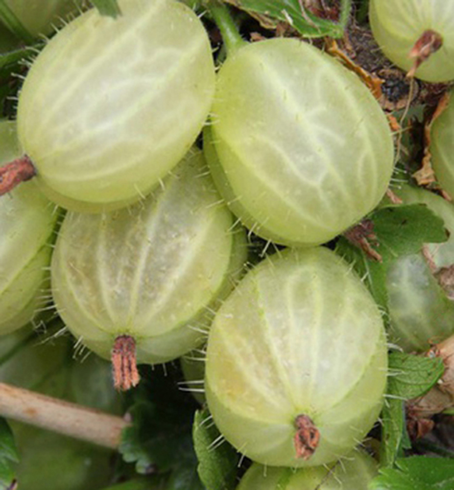 Eigenschaften: Die Früchte reifen Ende Juli, sie sind groß, mit leicht aromatischem Fruchtfleisch mit süß-saurem Geschmack. Die Schale ist dunkelgrün, glatt, fast haarlos. Die Ernte ist regelmäßig und ausgewogen. Die Früchte eignen sich zum direkten Verzehr und zur Weiterverarbeitung. Diese Sorte weist eine hohe Resistenz gegen den Amerikanischen Mehltau auf.